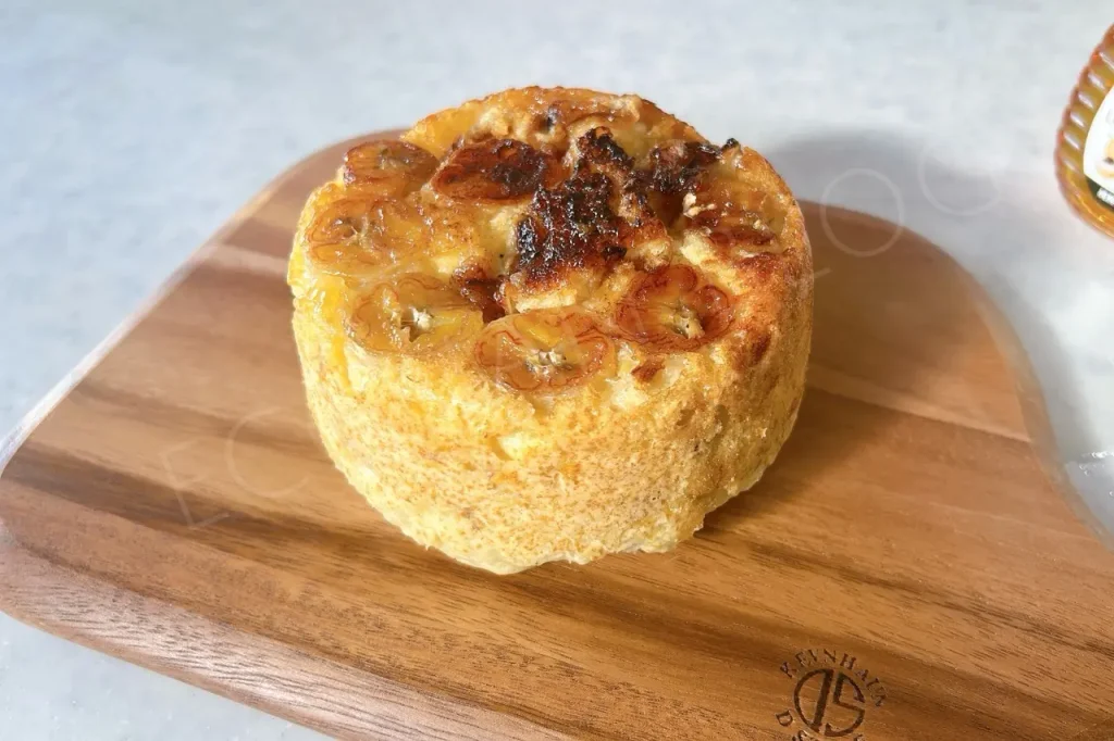 本当はバナナ2本使うところを1本で作ったので、バナナの切り方が節約気味なんですけど(笑)、焼き目がしっかりつくからめちゃくちゃ美味しそう!!!底に砂糖を敷いたので、ちょっとキャラメリゼされてる感じ。こちらも電子レンジの秒数をプラスしたのですが、これがギリギリでしたね。これ以上増やしてたら焦げていたかも。