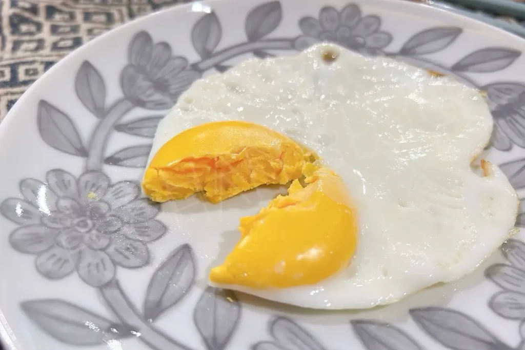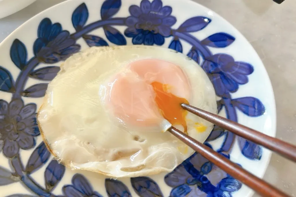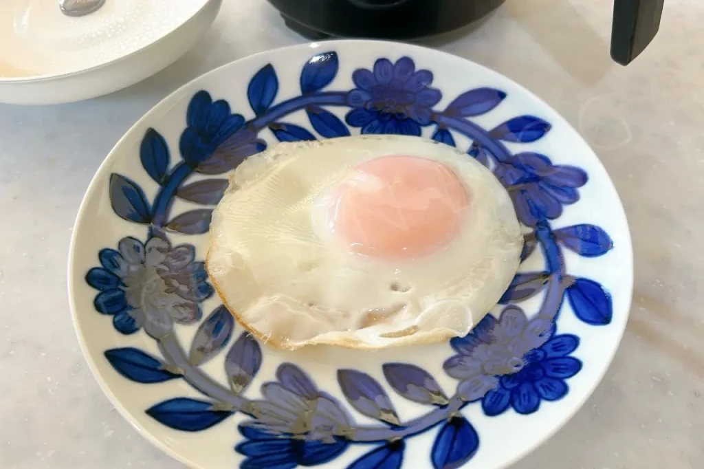 めちゃくちゃ美しい目玉焼きができました!見た目は100点!焼き目もついていますね〜。驚き!