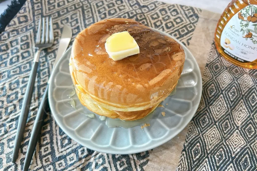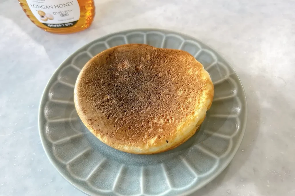 なんと厚さ4cm!すごくないですか?中までしっかり火が通ってこんな厚みのホットケーキを家で作れるなんて感動〜!これには子どももびっくりで、「また作ってー!」と大絶賛でした。