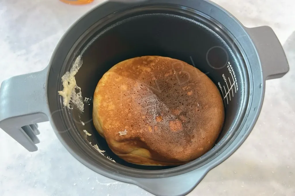 分厚いホットケーキって、なんでこうも人を魅了するんでしょうね……。なかなかフライパンでは厚いホットケーキが作れないので、マグポットでチャレンジしてみました。