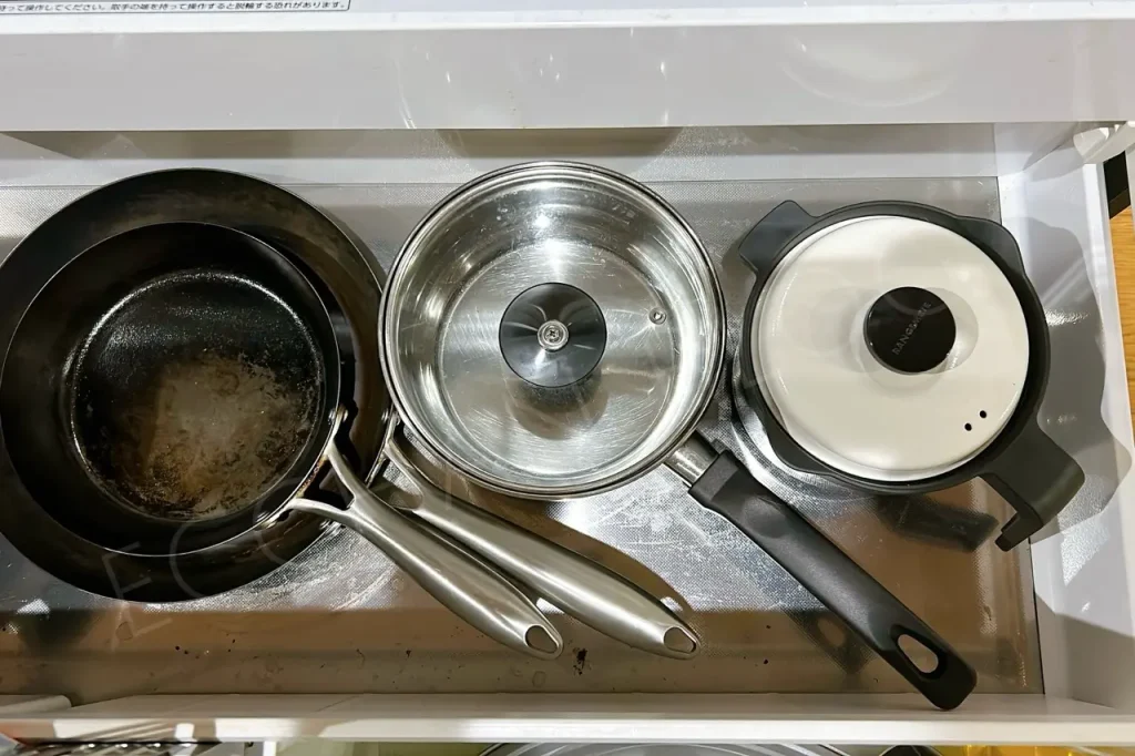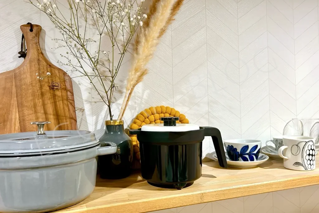 そのため、キッチン収納によっては「どこにしまおうかな?」と少し迷う方もいるかもしれません。特に、同じシリーズの「レンジメートプロ」と比べると、マグポットのほうが高さがある(15cm)ので、収納スペースは少し必要になります。とはいえ、ちょっと大きめの鍋がしまってあるスペースなら十分です。