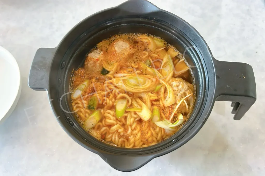 レシピブックの表示よりも多めに加熱しましたが、ちょっと上にあるネギの火の通りがイマイチだったので、もう30秒プラス。きちんと火を通したい具材は、下の方に入れるのがミソかなと思います。