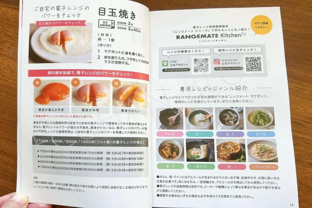 でも実際に使ってみて安心したのが、レシピブックの内容がかなり充実していること。作り方や加熱時間がしっかり書かれているので、