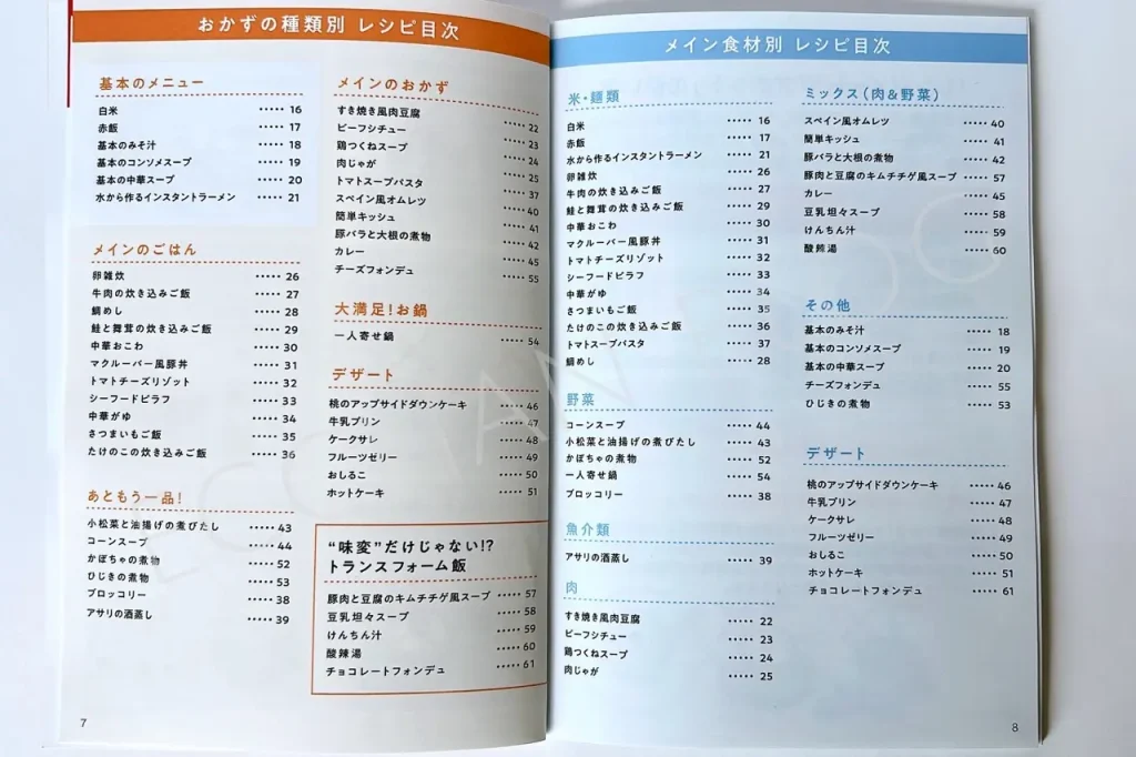 レシピブックには45種類の料理が掲載されていて、