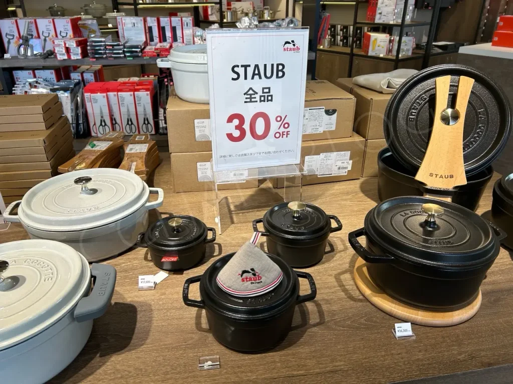 - ストウブのアウトレット店舗での価格は常時30%オフ